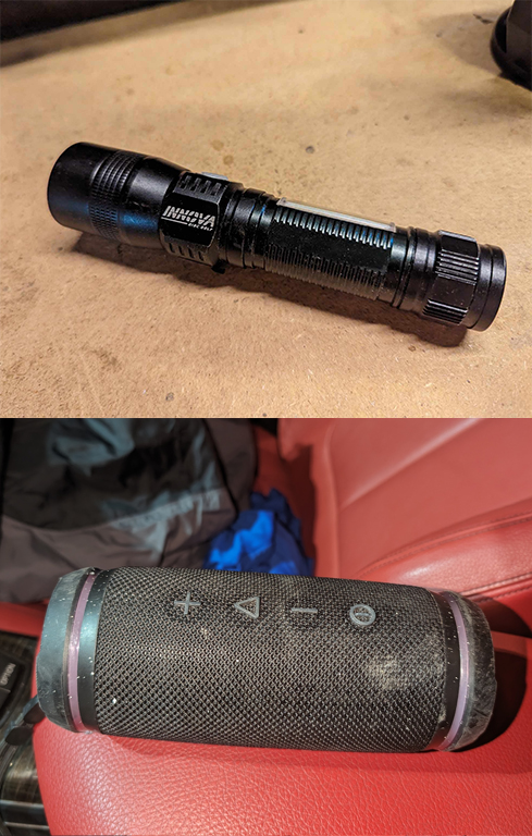 The following items are looking for their owners: Bluetooth Speaker & Innova UV Light